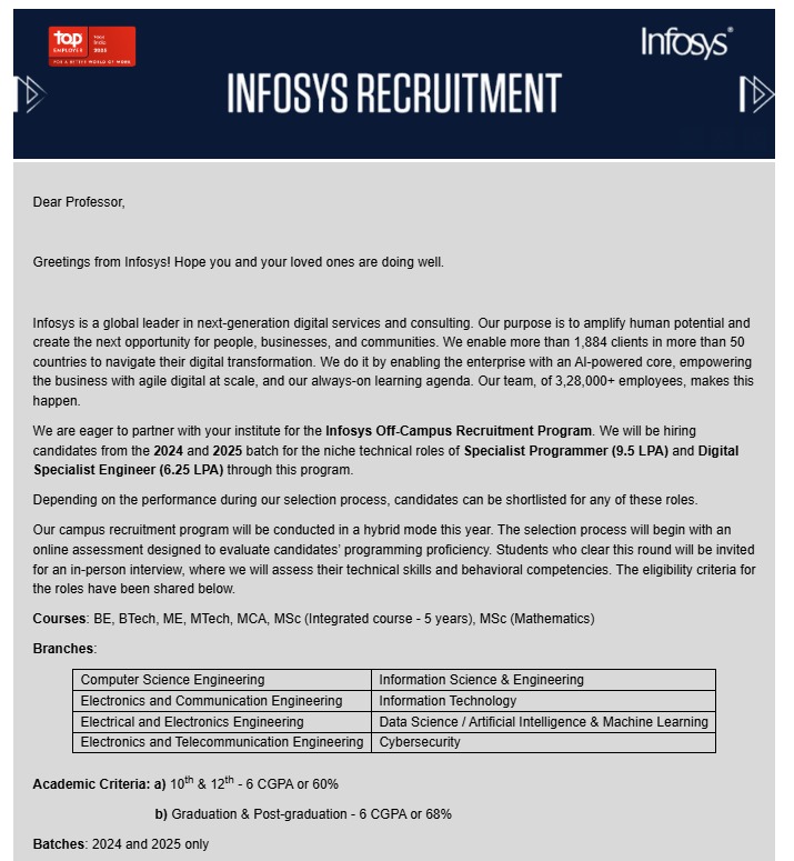 Infosys off-campus recruitment 2025 eligibility criteria
